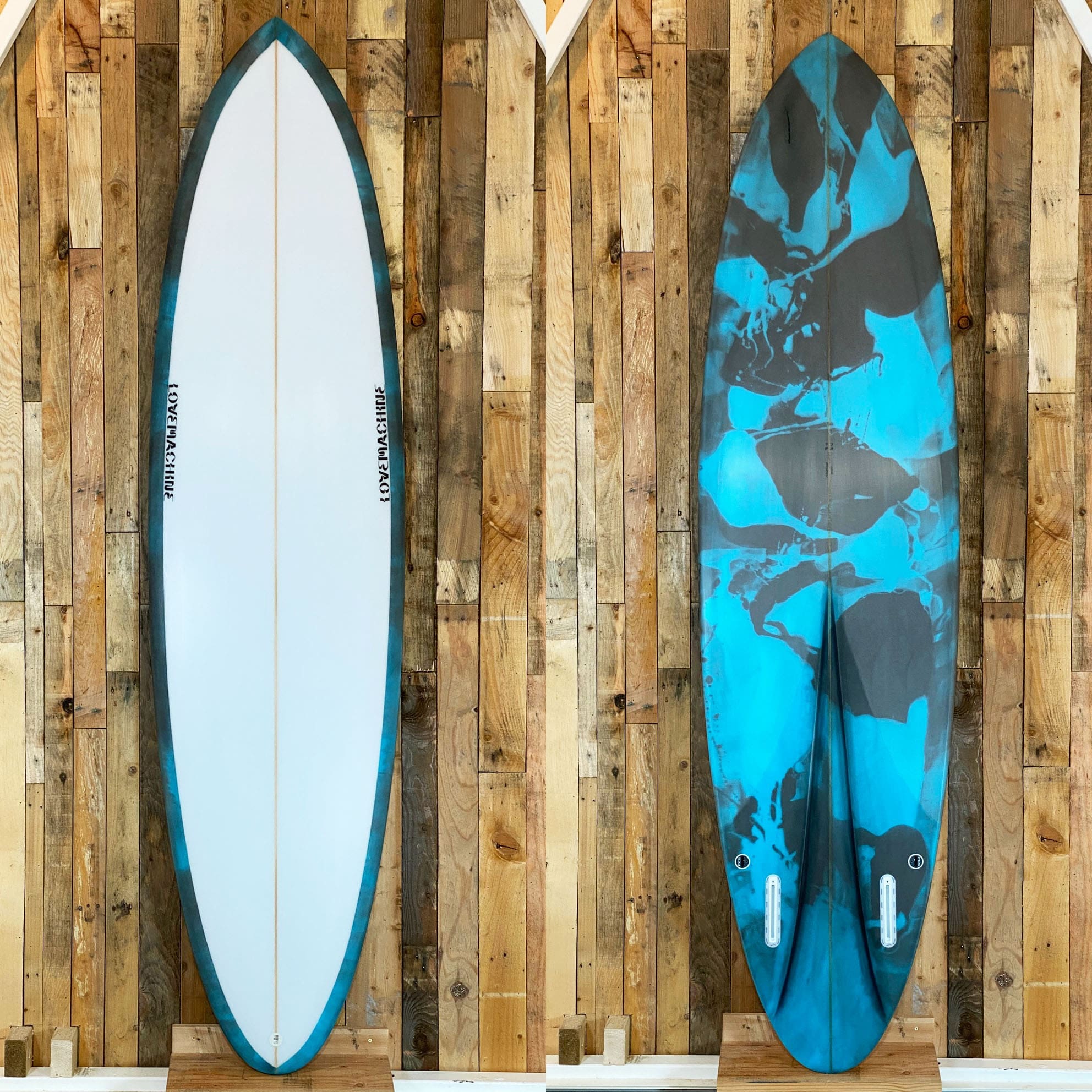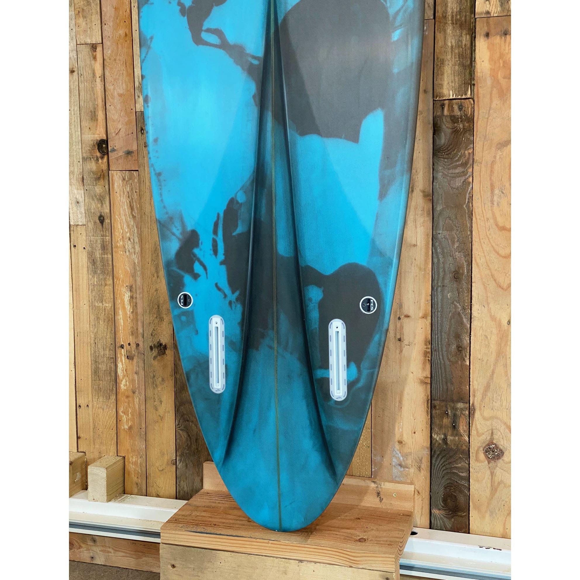 Notes from Ryan: “The FM isn’t a ‘channel bottom’ in the classical sense – the channel is there as a break for water flow, but it isn’t doing for the board what most designers are chasing in the deeper more exaggerated channel bottoms that are so popular right now. This design sports a pretty hefty spiral vee in the back half of the board, and while that is amazing for rail transitions and feel, it creates suction between the board and wave; the channel breaks that water flow that is sucking onto the board, so you get the three-dimensional value of the spiral vee and its rolling sensation, but without the stickiness. You’ll notice the 7’2 has a straight channel as opposed to the curved one that most have become accustomed to in seeing the FM; the first 15 or so boards all had a straight channel like this, and as Pat’s was in that batch, so I’m running with it for this model as we’re making dead on 1 for 1 copies.”