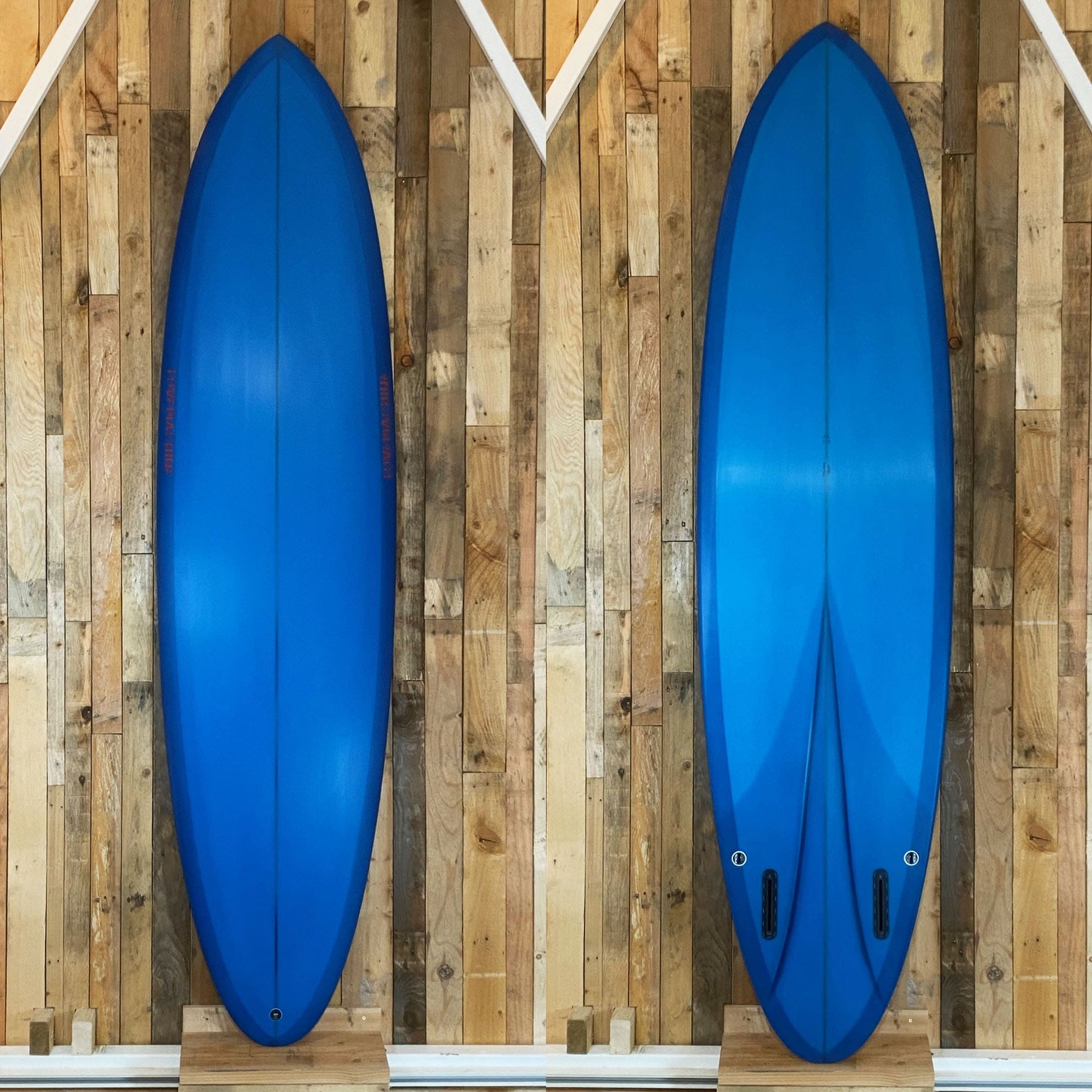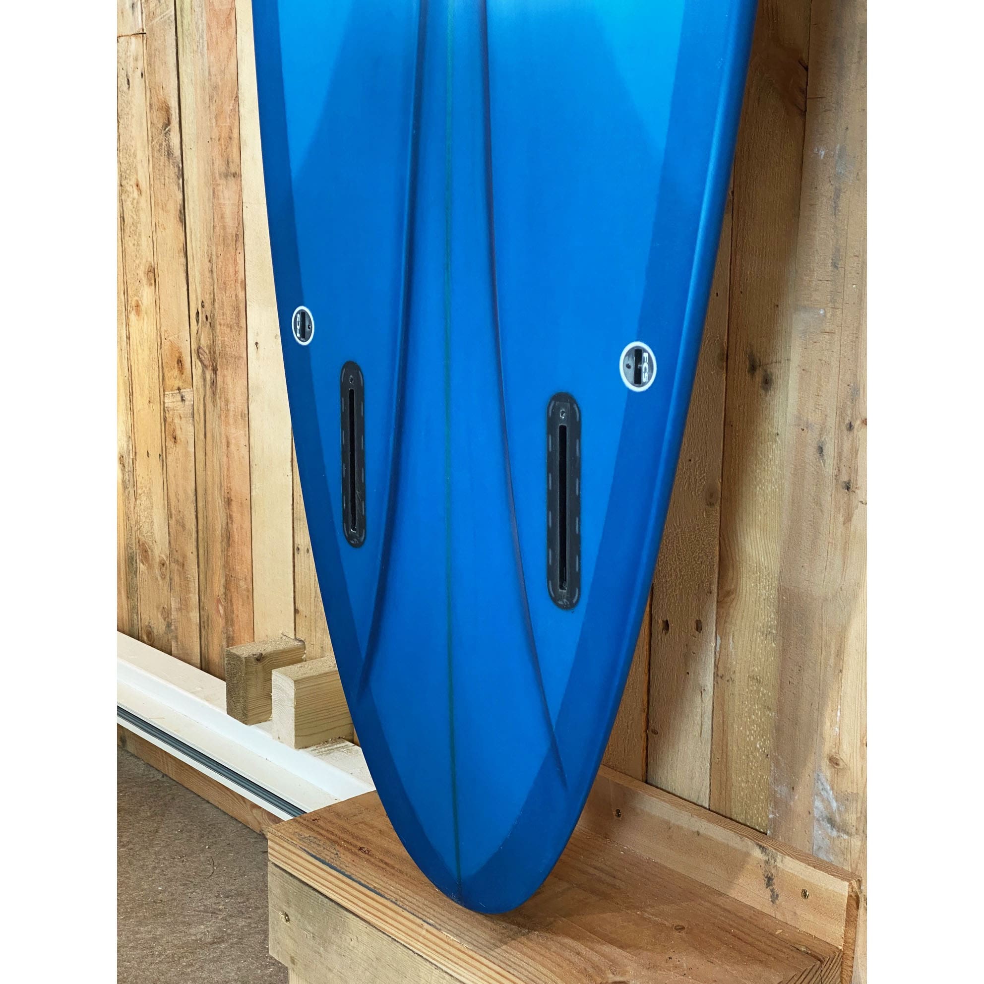 Notes from Ryan: “The FM isn’t a ‘channel bottom’ in the classical sense – the channel is there as a break for water flow, but it isn’t doing for the board what most designers are chasing in the deeper more exaggerated channel bottoms that are so popular right now. This design sports a pretty hefty spiral vee in the back half of the board, and while that is amazing for rail transitions and feel, it creates suction between the board and wave; the channel breaks that water flow that is sucking onto the board, so you get the three-dimensional value of the spiral vee and its rolling sensation, but without the stickiness. You’ll notice the 7’2 has a straight channel as opposed to the curved one that most have become accustomed to in seeing the FM; the first 15 or so boards all had a straight channel like this, and as Pat’s was in that batch, so I’m running with it for this model as we’re making dead on 1 for 1 copies.”