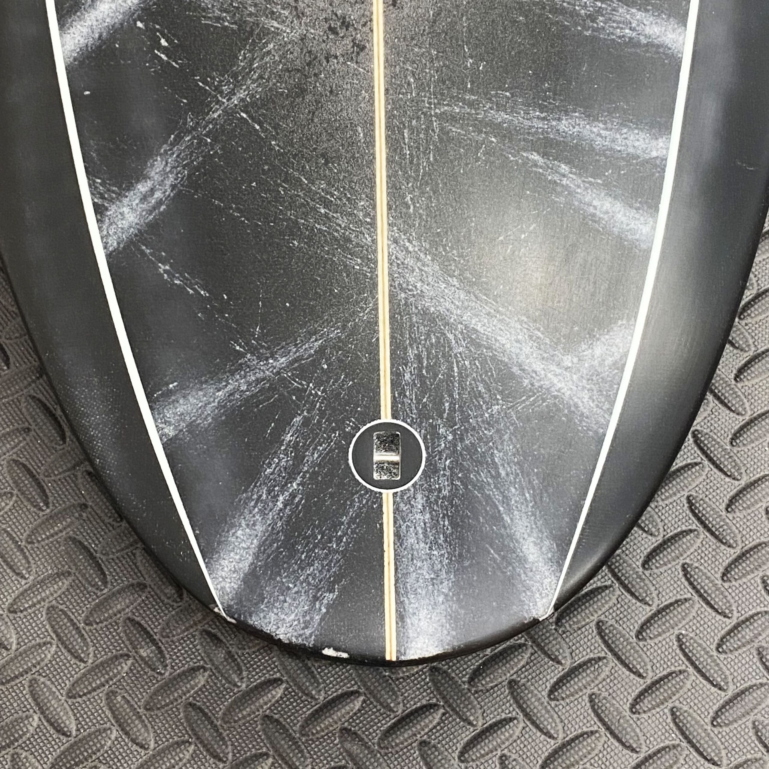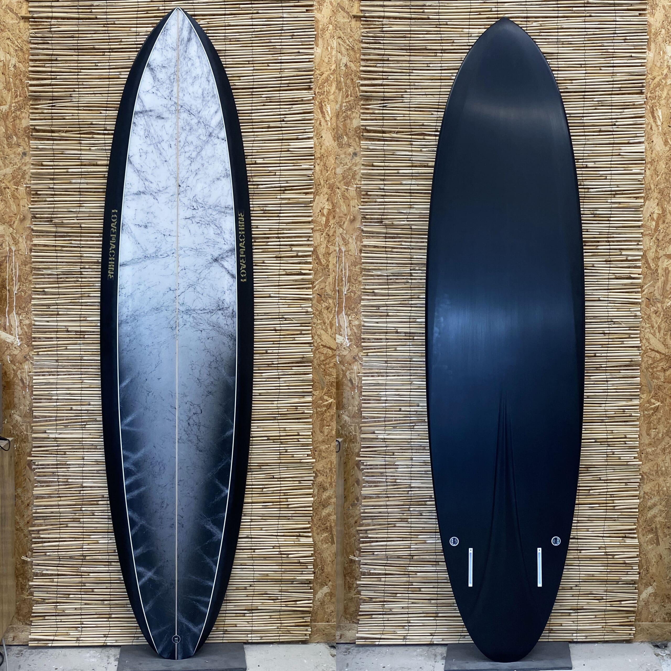 Notes from Ryan: “The FM isn’t a ‘channel bottom’ in the classical sense – the channel is there as a break for water flow, but it isn’t doing for the board what most designers are chasing in the deeper more exaggerated channel bottoms that are so popular right now. This design sports a pretty hefty spiral vee in the back half of the board, and while that is amazing for rail transitions and feel, it creates suction between the board and wave; the channel breaks that water flow that is sucking onto the board, so you get the three-dimensional value of the spiral vee and its rolling sensation, but without the stickiness. You’ll notice the 7’2 has a straight channel as opposed to the curved one that most have become accustomed to in seeing the FM; the first 15 or so boards all had a straight channel like this, and as Pat’s was in that batch, so I’m running with it for this model as we’re making dead on 1 for 1 copies.”
